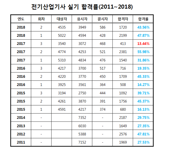 #전기기사 #전기산업기사 #전기시험 #실기시험 #난이도비교 #전기자격증 #전기공학 #산업기사 #전기인증 #시험통계
