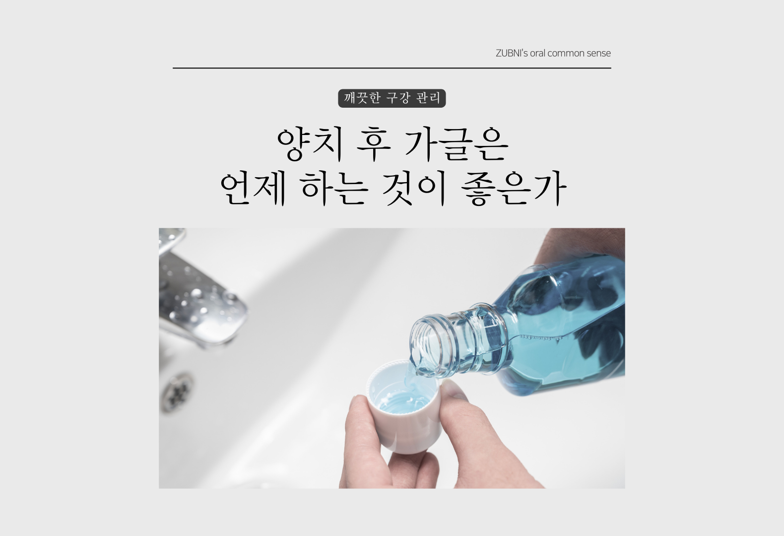 가글은 일반적으로 양치질 후에 사용하는 것이 좋습니다. 양치질을 통해 치아의 플라그를 제거한 후, 가글을 사용하면 남아있는 세균을 더욱 효과적으로 제거할 수 있습니다. 전문가들은 양치 후 30분 정도 기다린 후 가글을 사용하는 것을 추천합니다. 이는 치약의 성분이 입안에 남아있지 않도록 하기 위함입니다.