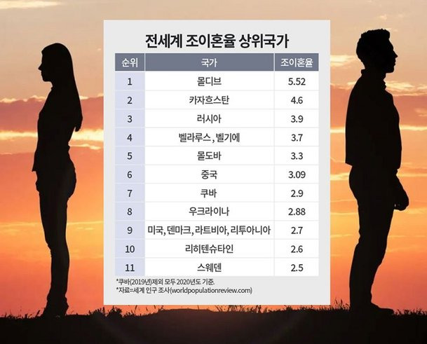[1] 폴리스TV - 2022년 기준 전 세계에서 이혼율이 가장 높은 나라 러시아 ... (https://www.policetv.co.kr/news/articleView.html?idxno=51731)
