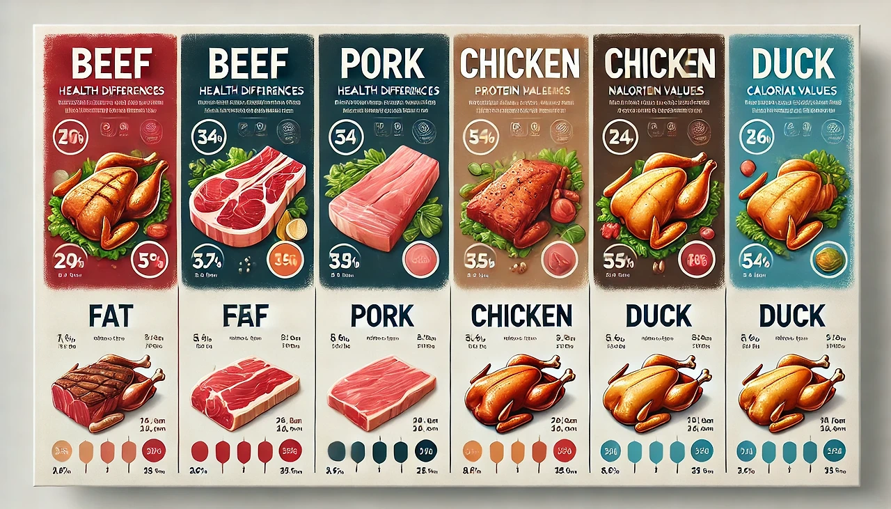 소고기는 소에서 얻는 고기로, 단백질과 철분이 풍부하여 체력 증진에 도움을 줍니다. 반면, 돼지고기는 돼지에서 얻는 고기로, 비타민 B군이 풍부하여 에너지 대사에 기여합니다. 두 고기 모두 한국 요리에서 자주 사용되며, 각기 다른 맛과 질감을 제공합니다.