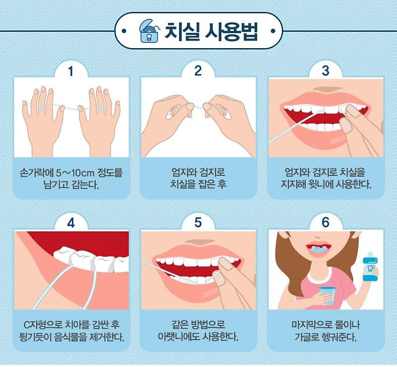 치실 사용법을 이해하는 데 도움이 되는 시각 자료를 제공합니다. 아래 이미지는 올바른 치실 사용법을 보여줍니다.