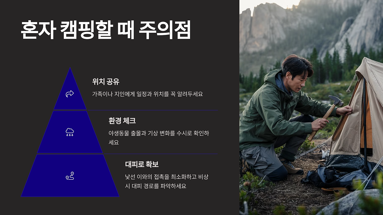 혼자 하이킹은 자신을 돌아보고 자연을 만끽할 수 있는 좋은 기회입니다. 하지만 안전을 최우선으로 생각해야 합니다. 최소한의 장비로도 위급 상황에 대비할 수 있도록 준비하는 것이 중요합니다. 다음 하이킹에서는 이 팁들을 참고하여 안전하고 즐거운 시간을 보내시기 바랍니다!