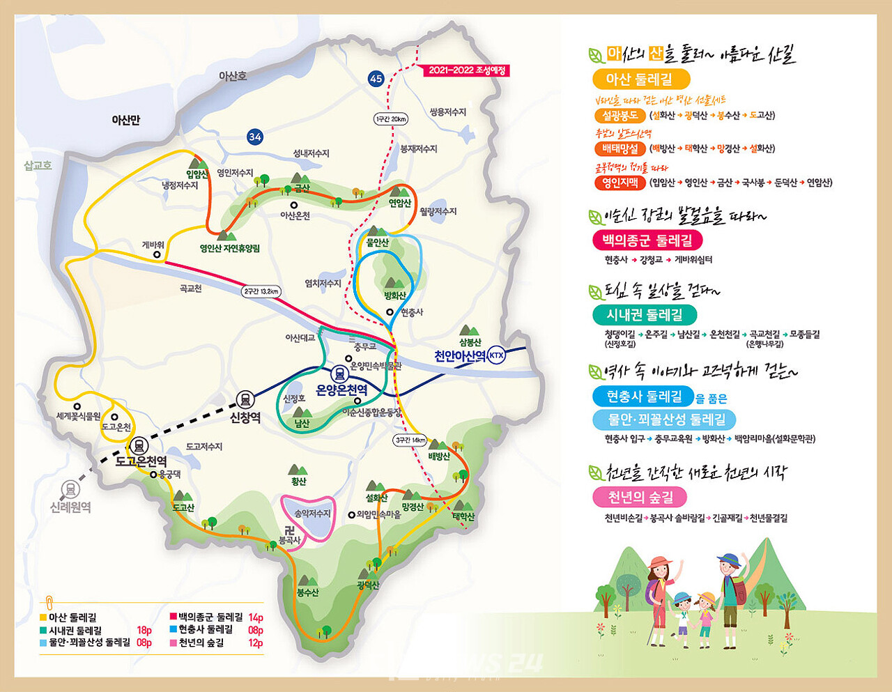 아산 둘레길의 주요 코스는 다음과 같습니다: