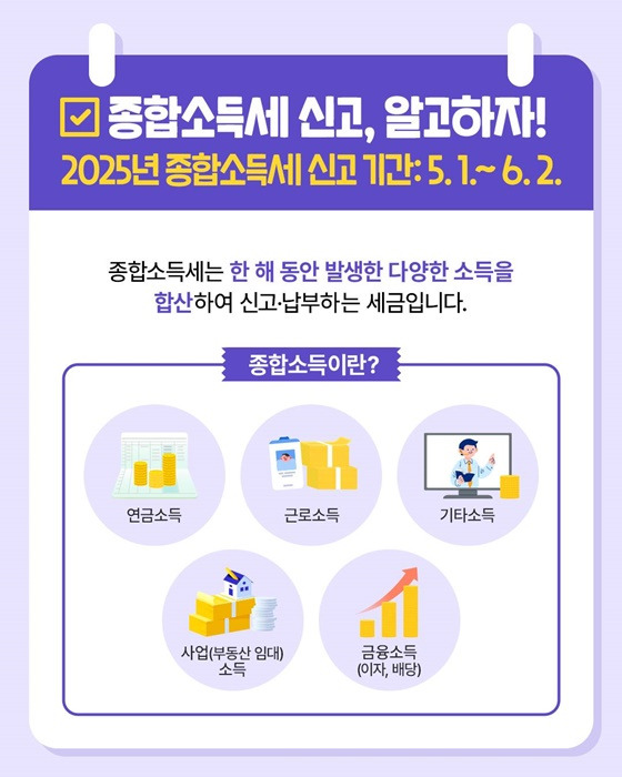 5월은 많은 사람들이 기다리는 종합소득세 신고의 달입니다. 종합소득세는 개인이 한 해 동안 얻은 모든 소득을 합산하여 세금을 부과하는 제도입니다. 이 세금은 근로소득, 사업소득, 이자소득, 배당소득 등 다양한 소득을 포함합니다. 특히, 5월은 이러한 소득을 신고하고 납부하는 중요한 시기입니다.