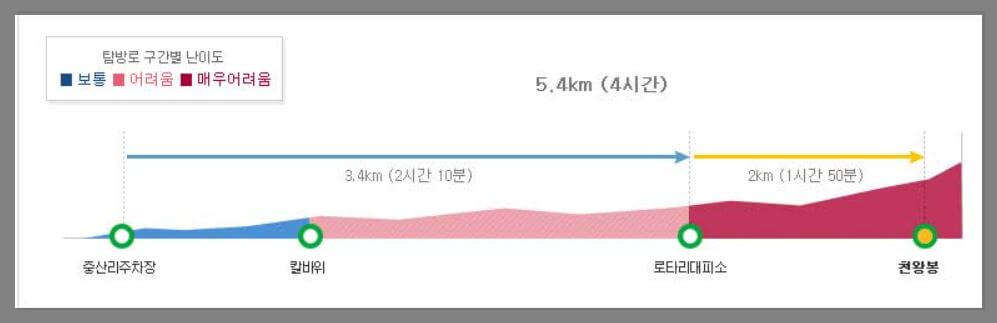 중산리에서 천왕봉까지의 거리는 약 5.4km이며, 소요 시간은 약 4시간 30분 정도입니다. 하지만 개인의 체력과 경험에 따라 소요 시간은 달라질 수 있으니, 여유를 가지고 계획하는 것이 좋습니다.