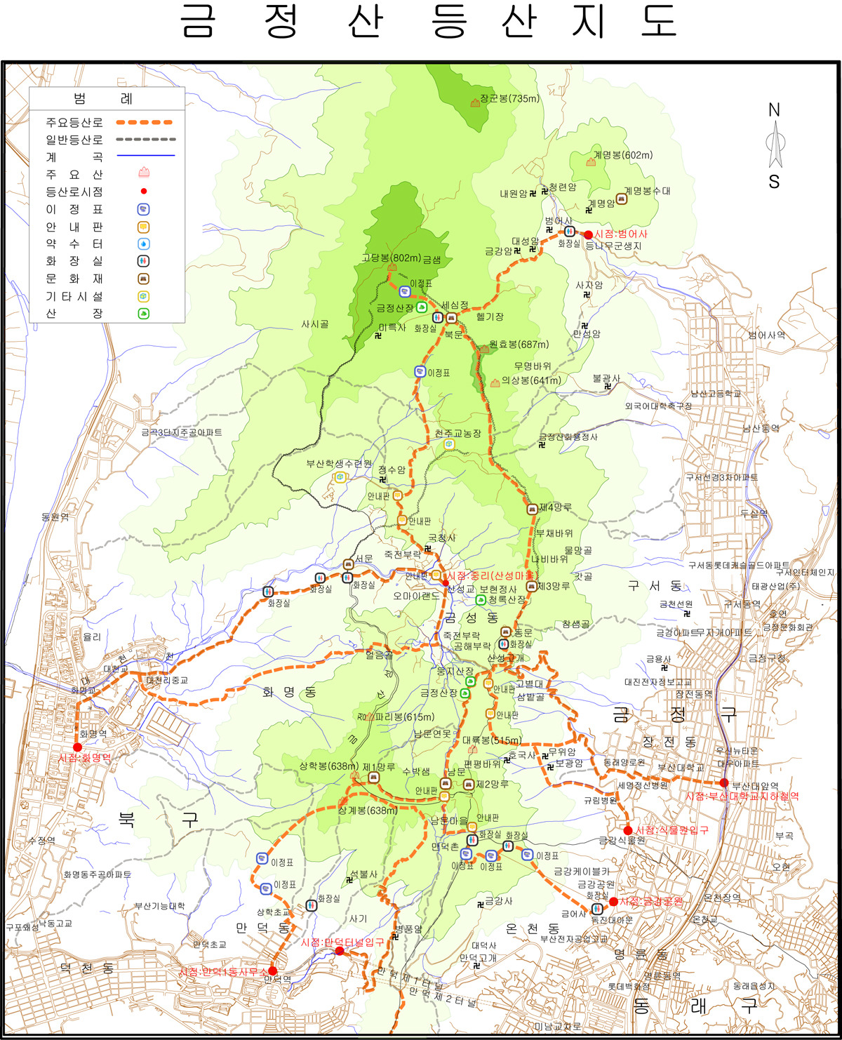 금정산은 부산 북구와 양산시에 걸쳐 있는 산으로, 해발 802m의 높이를 자랑합니다. 이 산은 금빛 물고기가 내려와 노닐었다는 전설이 전해져 내려오며, 그 이름의 유래가 되었습니다. 금정산은 사계절 내내 다양한 매력을 지니고 있어, 많은 사람들이 찾는 명소입니다.
