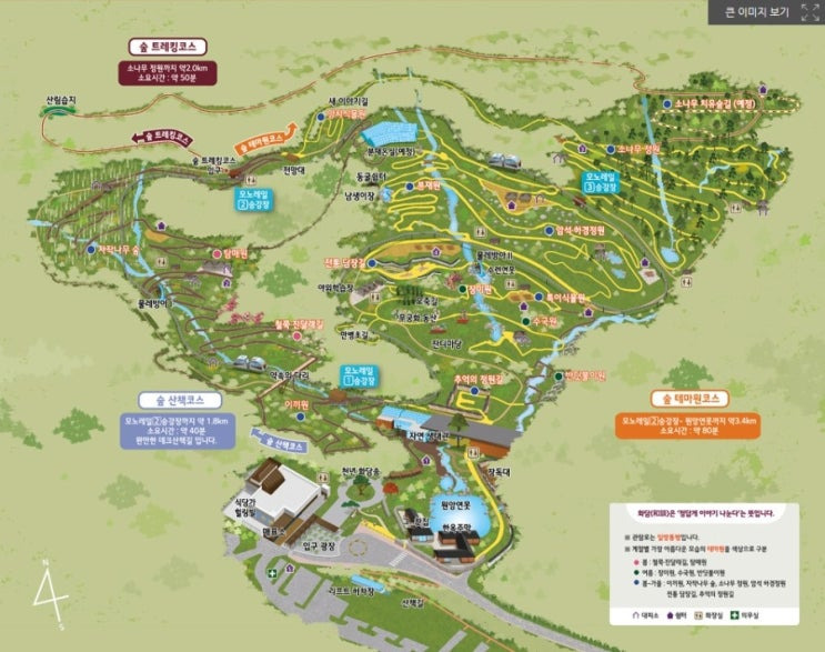 - 숲 산책로 : 약 40분 소요, 자연을 느끼며 여유롭게 산책할 수 있습니다.