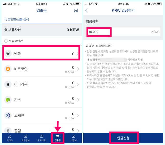 - 출금 : 매도한 원화를 자신의 은행 계좌로 출금합니다.