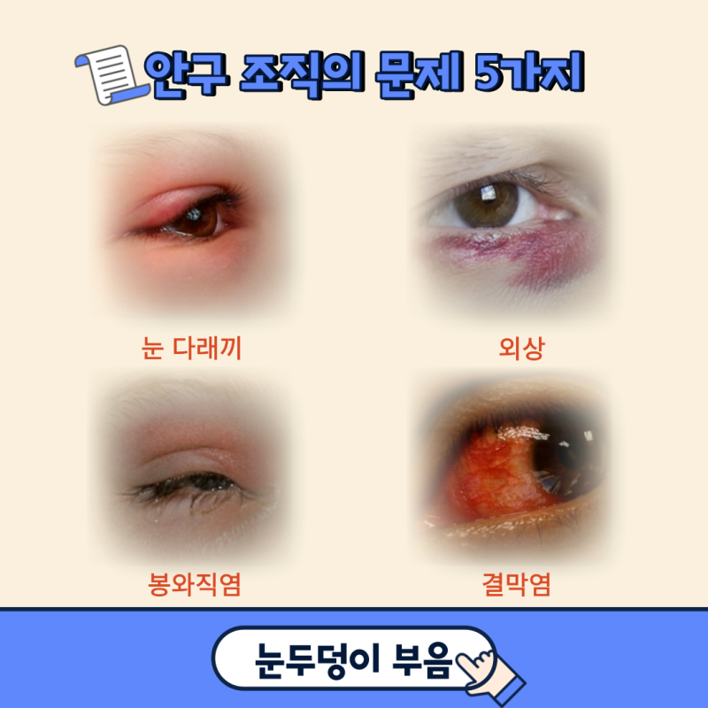 - 감염 : 결막염이나 눈 다래끼와 같은 감염성 질환이 눈두덩이 부음을 유발할 수 있습니다.
