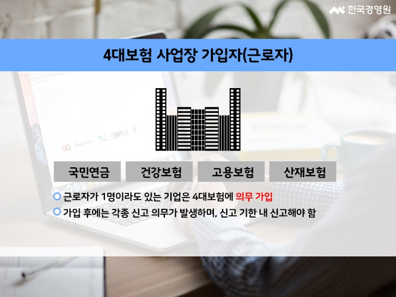 - 보험 가입 : 사업장에 근로자가 생기면, 해당 근로자를 4대보험에 가입시켜야 합니다.