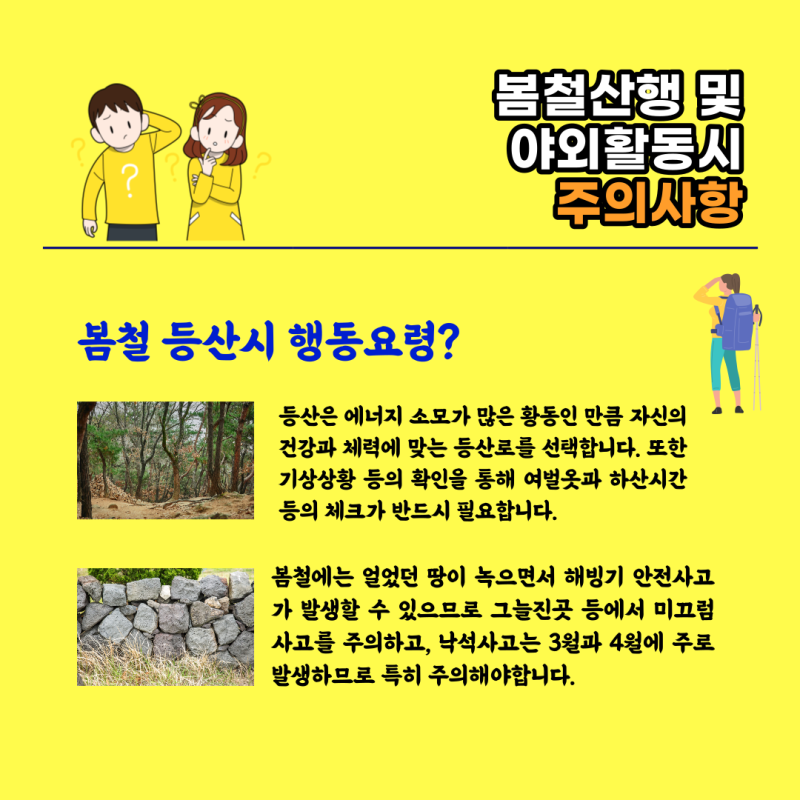 이번 포스팅이 여러분의 안전하고 즐거운 봄철 산행에 도움이 되길 바랍니다!