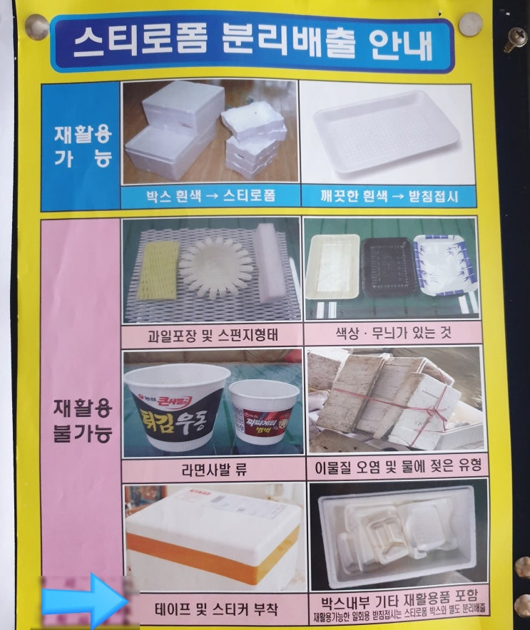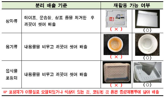 - 라벨 제거 : 스티로폼에 붙어있는 라벨이나 테이프는 제거해야 합니다.
