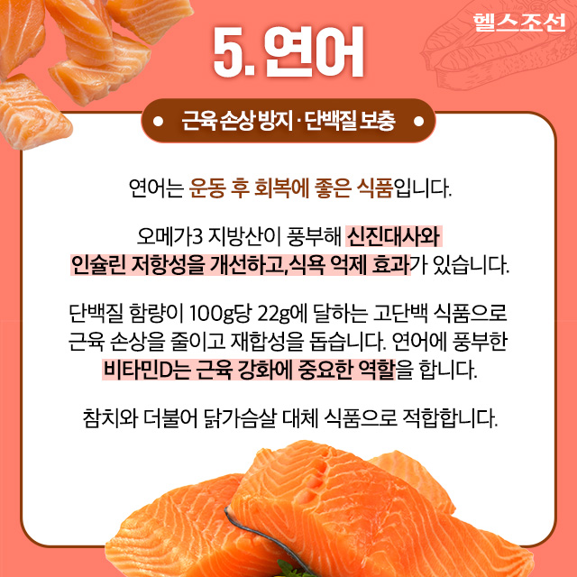연어는 단백질과 오메가-3 지방산이 풍부하여 운동 후 회복에 큰 도움을 줍니다. 100그램의 연어에는 약 22그램의 단백질이 포함되어 있어 근육 회복과 유지에 효과적입니다. 또한, 오메가-3 지방산은 염증을 줄이고 면역력을 높이는 데 기여합니다. 운동 후 연어를 섭취하면 더욱 효과적인 회복을 기대할 수 있습니다.