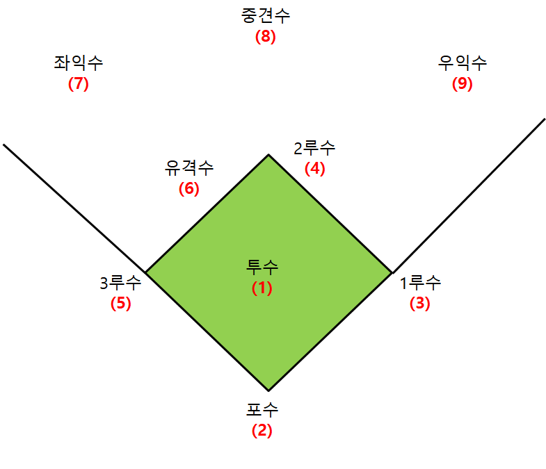 - 3 (1루수): 타자가 1루로 달려오는 것을 아웃시키는 역할을 합니다.