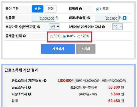 근로소득세 공제율 선택 기준