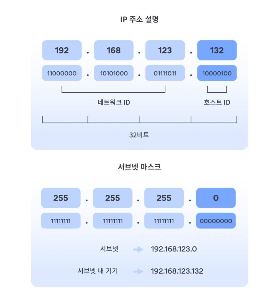 서브넷마스크는 IP 주소를 네트워크와 호스트로 나누는 데 사용되는 중요한 요소입니다. IP 주소는 네트워크를 식별하는 데 필요한 정보와 특정 장치를 식별하는 데 필요한 정보를 포함하고 있습니다. 서브넷마스크는 이러한 IP 주소의 구조를 이해하는 데 필수적입니다. 예를 들어, IP 주소가 "192.168.123.132"일 때, 서브넷마스크는 "255.255.255.0"으로 설정될 수 있습니다. 이 경우, 네트워크 ID와 호스트 ID를 구분할 수 있습니다.