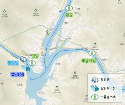 팔당댐 지역의 수자원 관리 지도를 보여주는 이미지입니다.