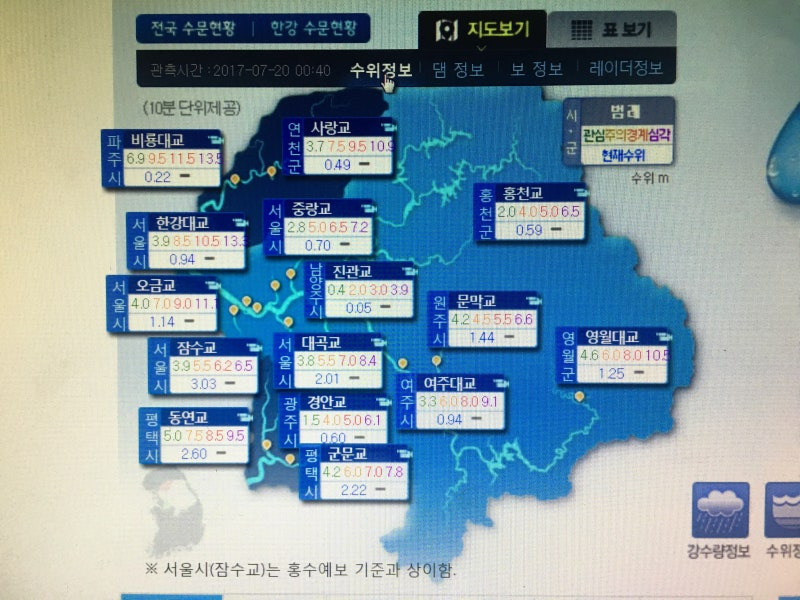 현재 팔당댐 수위 현황